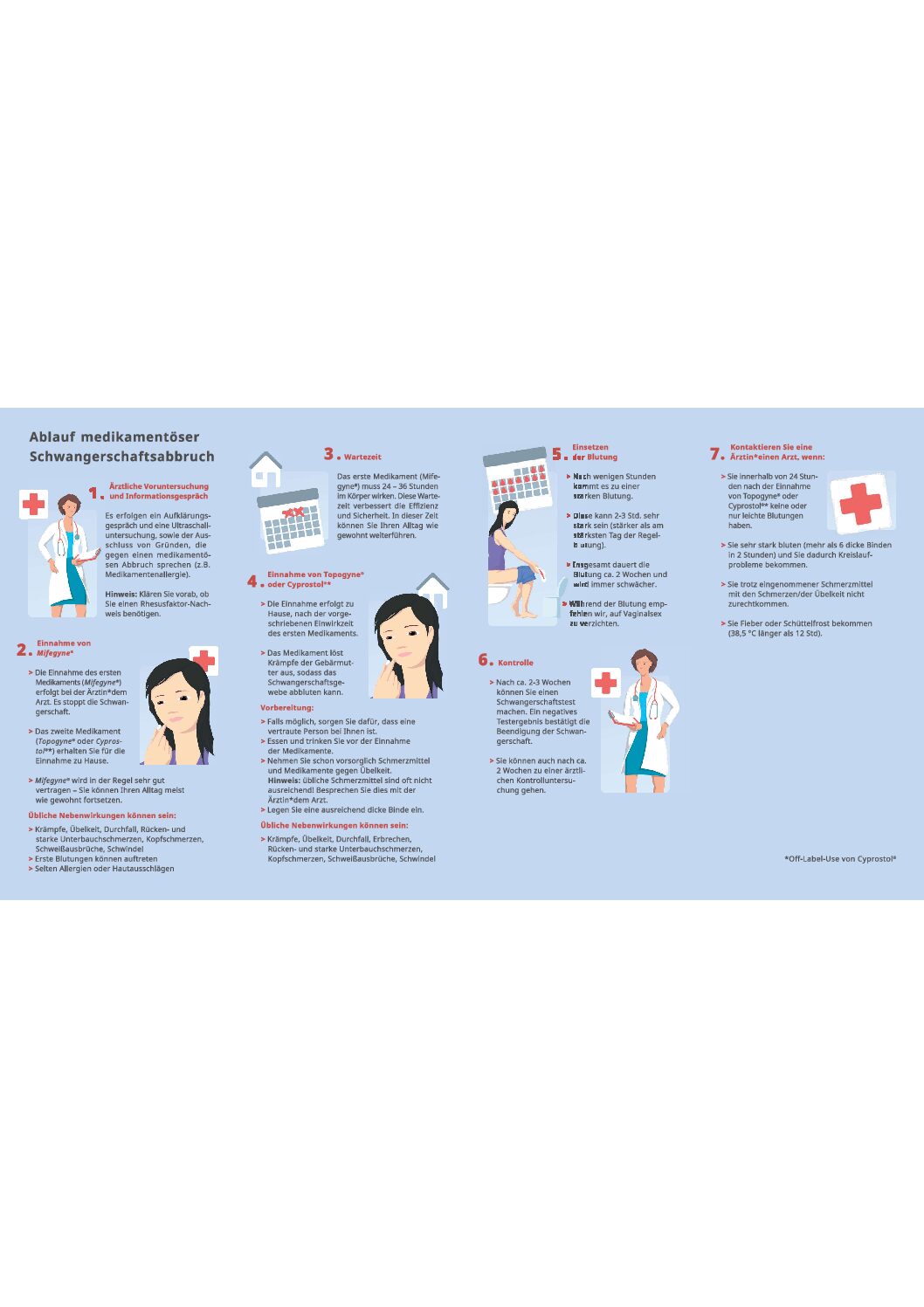 Der Folder informiert über den Ablauf eines Schwangerschaftsabbruchs mit Tabletten.